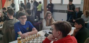 Im Anschluss an das Turnier wurden auch die saarländischen Blitzeinzelmeisterschaften in der Köllertalhalle ausgespielt. In diesem Jahr nahmen 47 Kinder und Jugendliche das Turnierangebot an. Zehn unserer Kinder und Jugendlichen nahmen teil, viele „blitzten“ zum ersten Mal. Alle spielten in einem Turnier, gewertet wurden am Ende nach DWZ Klassen. Hier schafften es Cedric Chassard in der DWZ Klasse unter 1800 und Raphael Klein in der DWZ Klasse unter 800 es auf Siegertreppchen. Alle Einzelergebnisse sind unter http://sjem.Jugendschach-Saar.de/index.php/bericht-bilder nachzulesen.