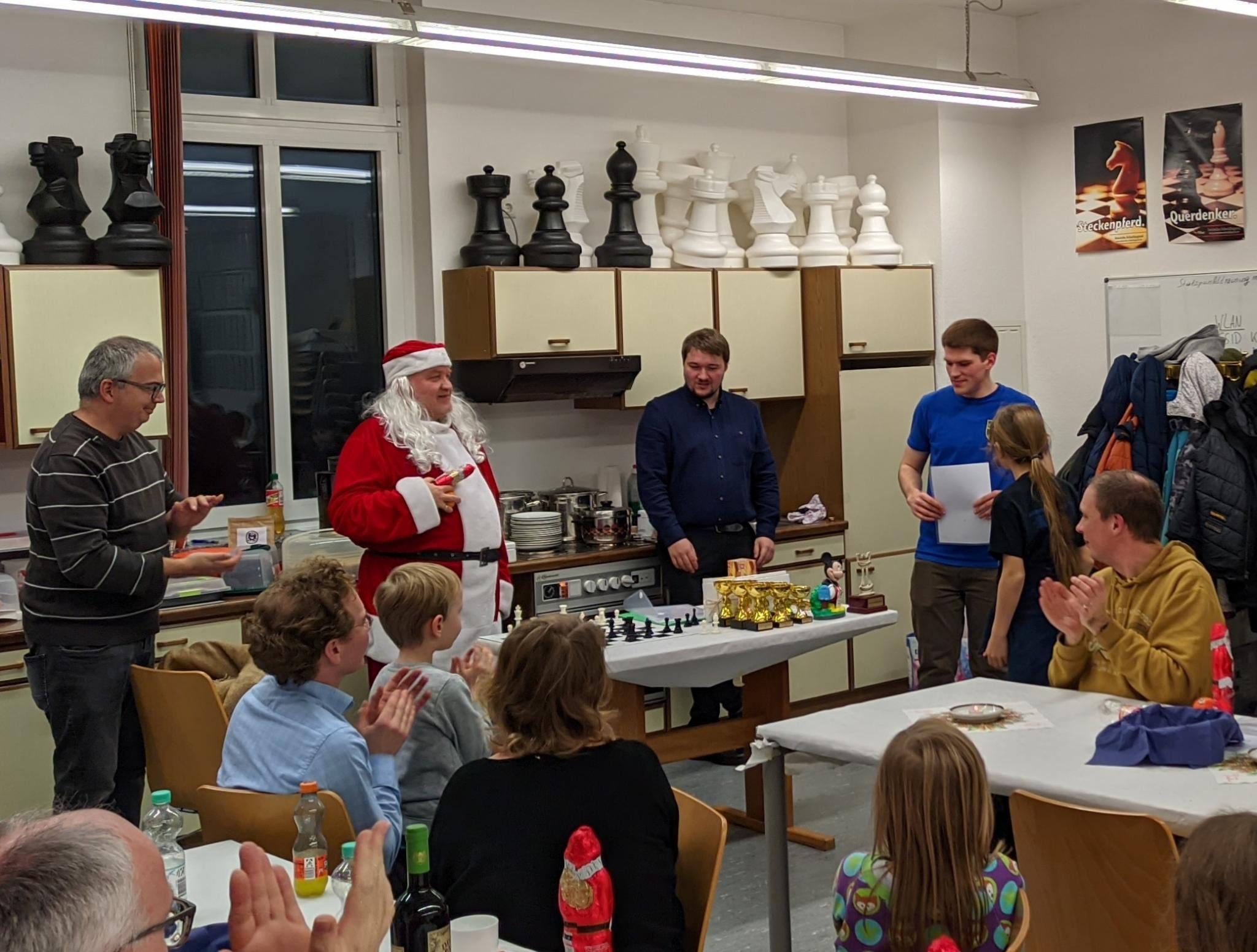 Am 9. Dezember fand die diesjährige Nikolausfeier des Schachvereins statt. Traditionell werden an diesem Tag vor der eigentlichen Feier zwei Turniere ausgerichtet: Das Nikolausnachwuchsturnier für Spieler mit einer DWZ unter 1000 und das Nikolausblitzturnier, welches offen für alle Vereinsmitglieder ist.